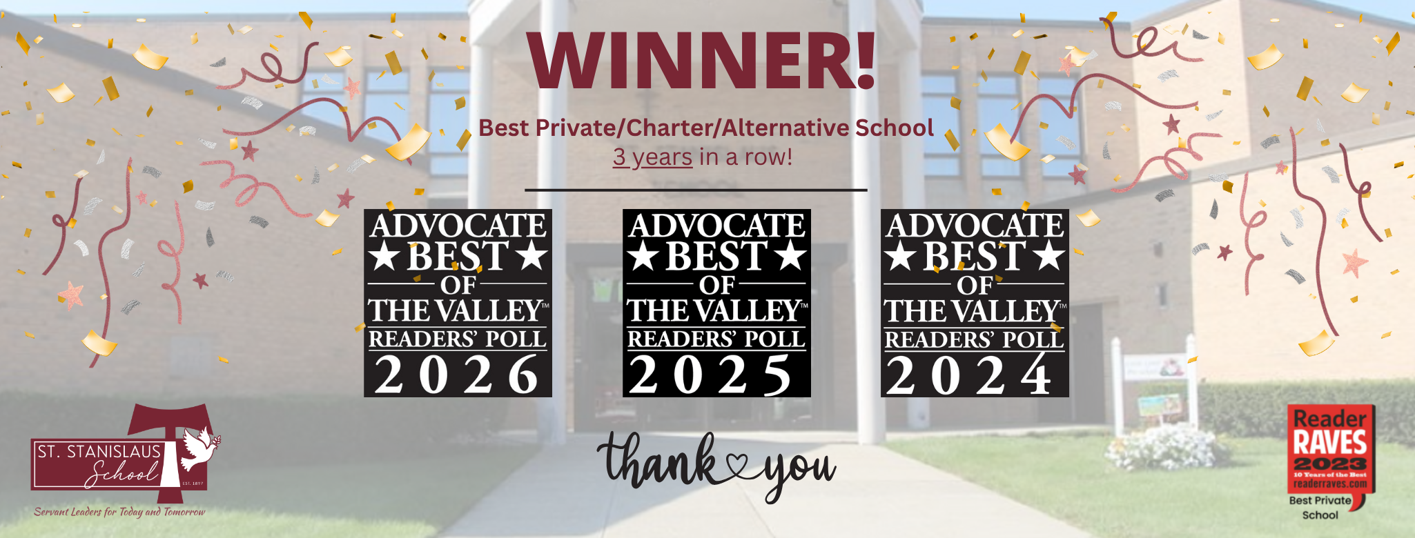 St. Stanislaus School is a Roman Catholic, Franciscan, co-educational Pre-K through 8th grade school. Students are assisted in developing their potential spiritually, physically, and socially within a safe and diverse community. A foundation of academic excellence is created to prepare students to become contributing members of a global society.